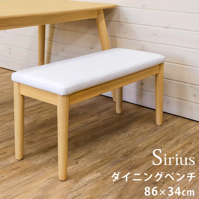 Sirius ホワイト PVCレザー W86 ダイニングベンチ 天然木 ナチュラル色脚 (廃番)