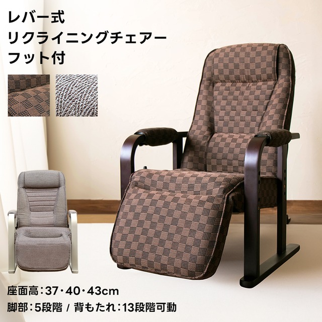 レバー式リクライニングチェア ひじ掛け付 フット付 レバー式 ファブリックソファ