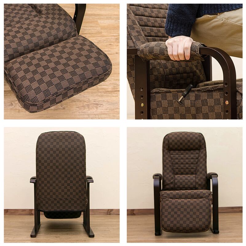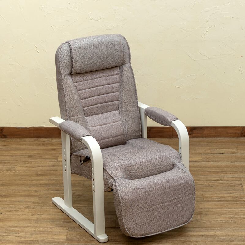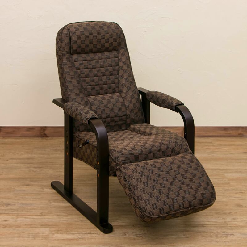 レバー式リクライニングチェア ひじ掛け付 フット付 レバー式 ファブリックソファ