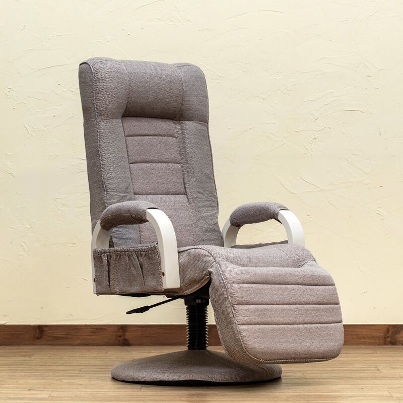 昇降式リクライニングチェア フット付きです。 背もたれはレバー操作でリクライニングします。(13段階)