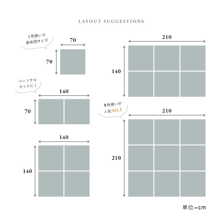 お部屋の雰囲気や使用シーンに合わせて組み合わせ自由自在な置き畳です。フローリングに置くだけでくつろぎのスペースに。