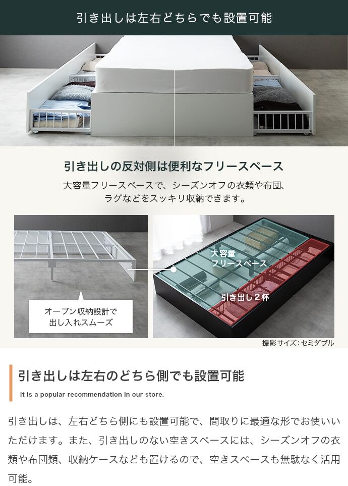 【セミダブル】Stock 引出し収納ベッド【超高密度ポケットコイルマットレス付】