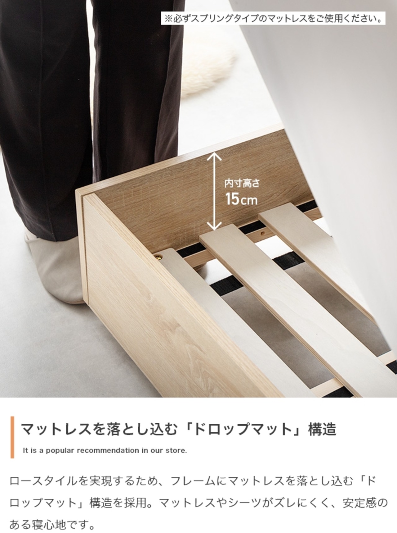 【シングル】Slib すのこローベッド【オリジナルポケットコイルマットレス付】