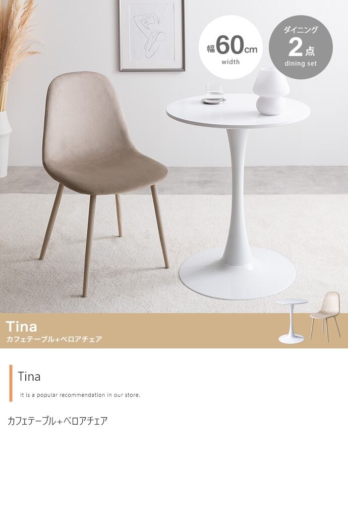 【2点セット】Tina 幅60cm カフェテーブル+ベロアチェア