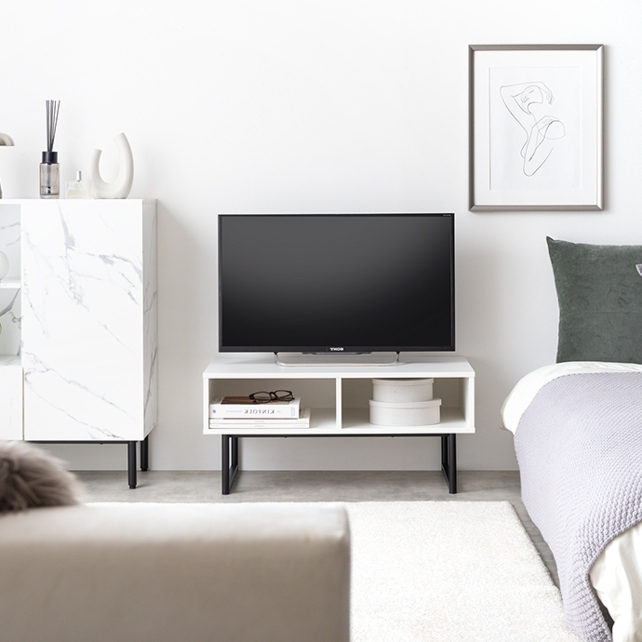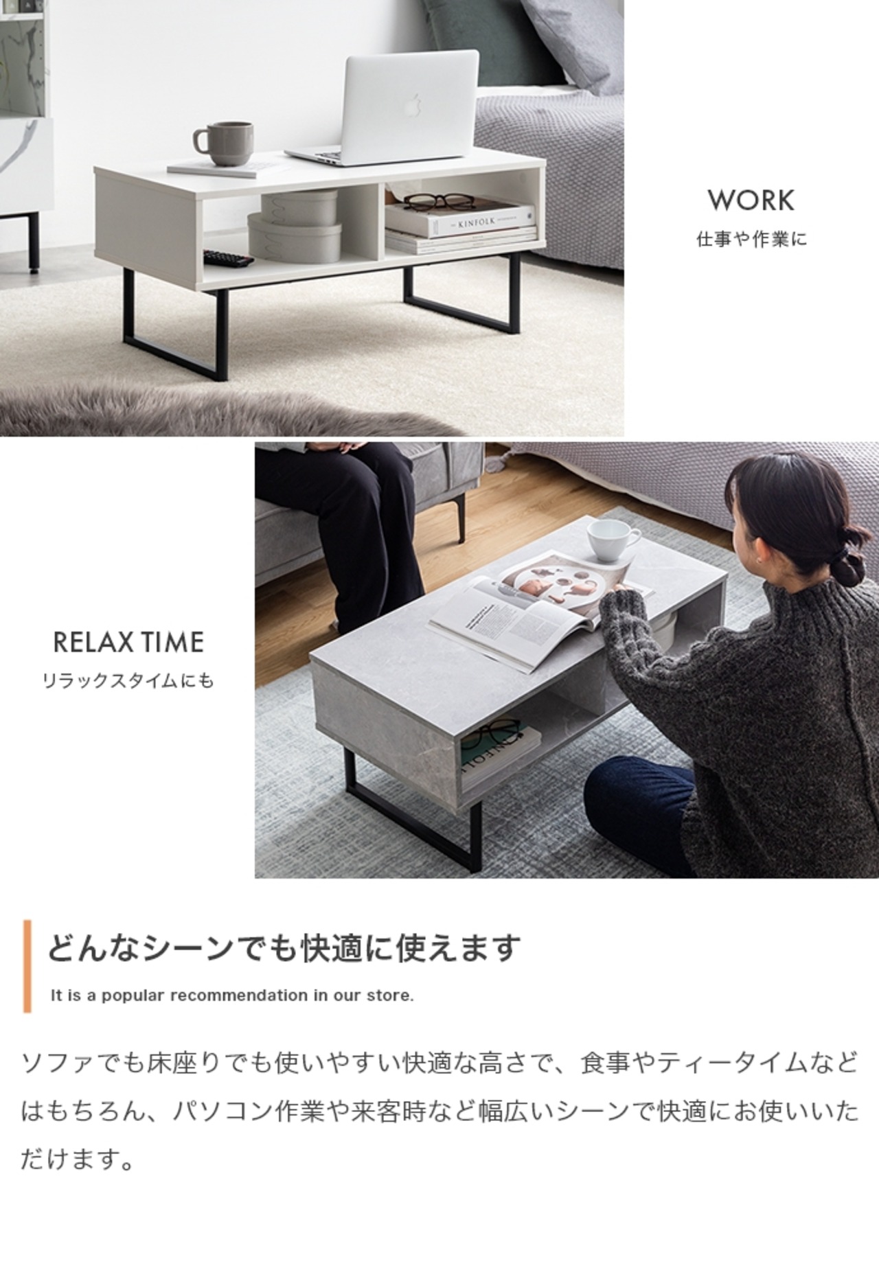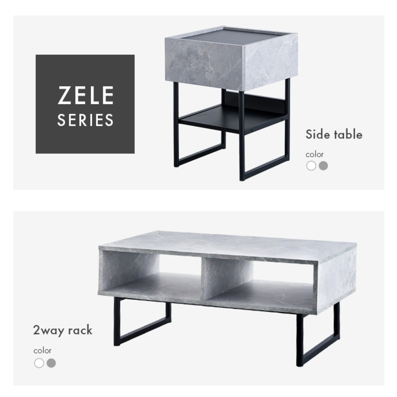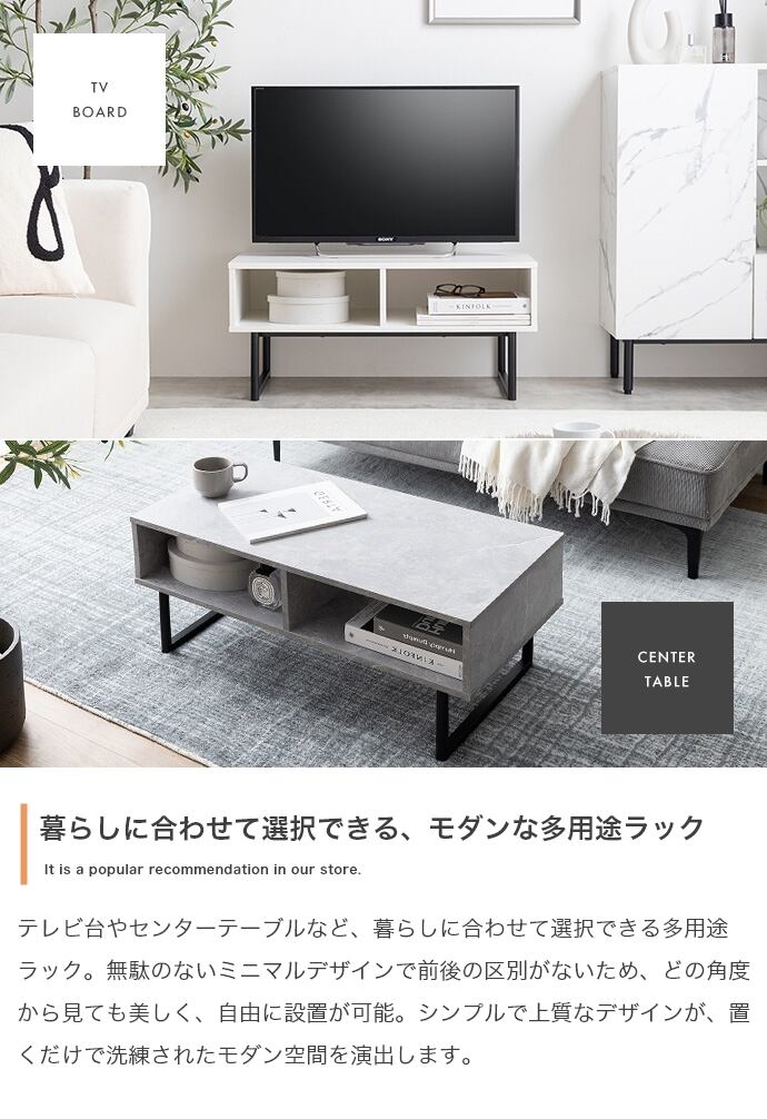 大人モダンな雰囲気が特徴の『Zele(ゼル)』2wayラック。無駄のないミニマルデザインで前後の区別がないため、どの角度から見ても美しく、お部屋のお好きな位置に設置可能です。シンプルなテレビボードや、広々天板のセンターテーブル、お気に入り小物を飾るディスプレイスペースにしたりと、様々なシーンで活用できます。