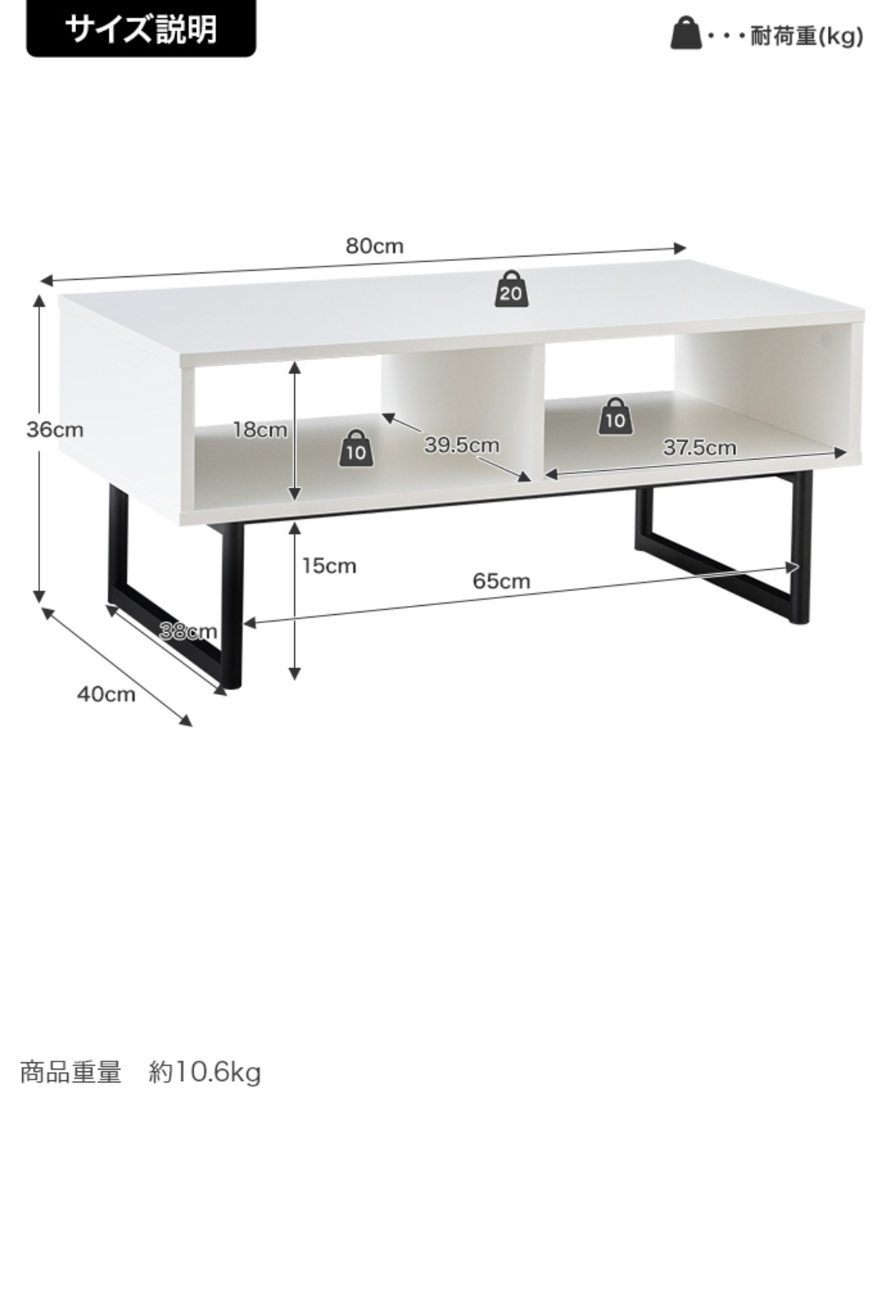 〇重量:【商品重量】約10.6kg 【耐荷重】天板:約20kg 、棚:約10kg