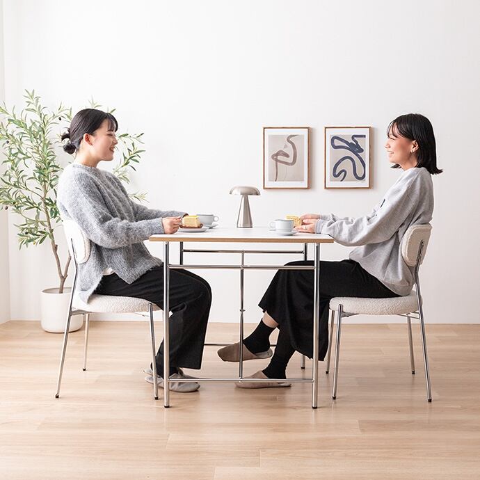 異素材ミックスの組み合わせが美しい『Joel(ジョエル)』ダイニングテーブル。お部屋に置くだけで、上質で洗練された空間を演出します。使いやすいサイズ感の天板とお手入れのしやすい加工により、長く快適にご使用可能。クロスバーによる横揺れ防止でしっかりとした安定感があり、食事だけでなく、ワークスペースや趣味の時間にも大活躍。圧迫感の少ないデザインのため、一人暮らしの方やワンルームなどにもおすすめです。
