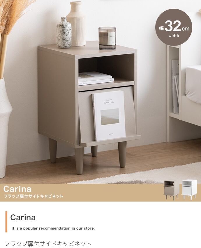 【幅32cm】Carina フラップ扉付サイドキャビネット