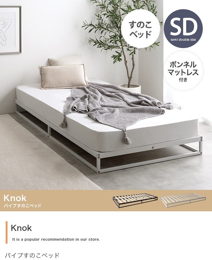 【セミダブル】Knok パイプすのこベッド(マットレス付き)【ボンネルコイルマットレス付き】