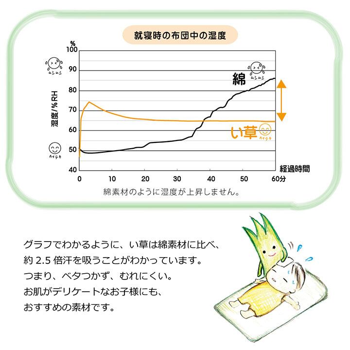 ■い草には汗などのジメジメ感を軽減する吸湿性と抗菌防臭などの効果があります。