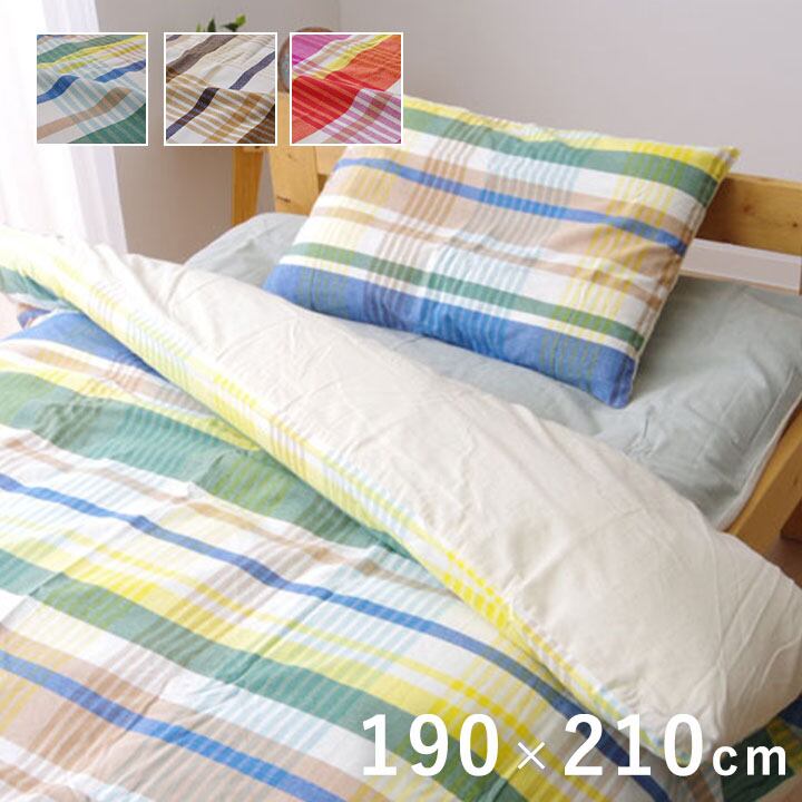 布団カバー 洗える チェック柄 インド綿使用 『バジル 掛け布団カバー』 ダブル 約190×210cm