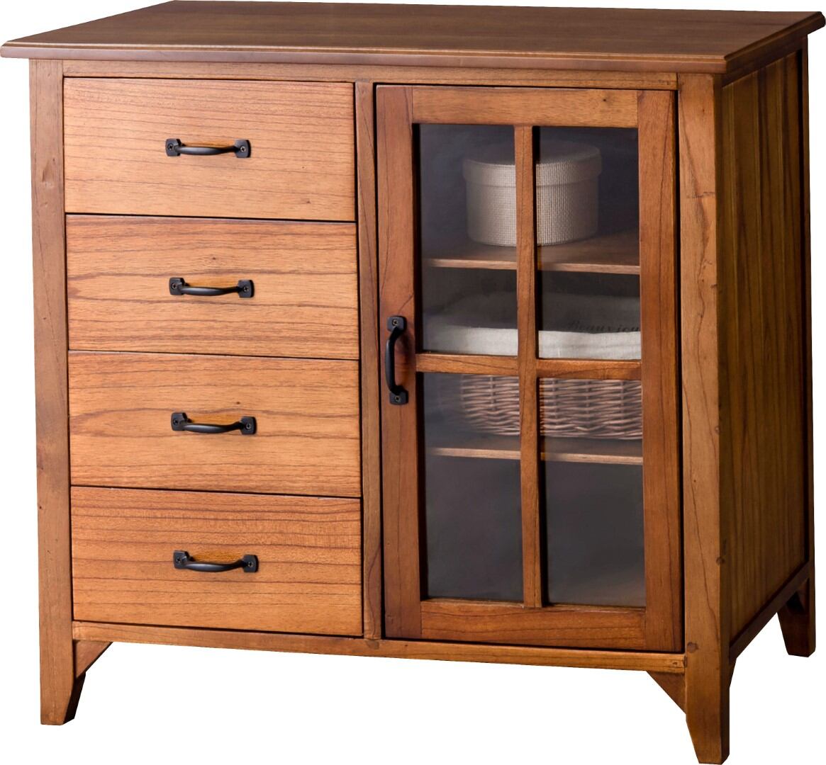 ティンバー キャビネット 天然木(ミンディ) ガラス扉棚 4引出付