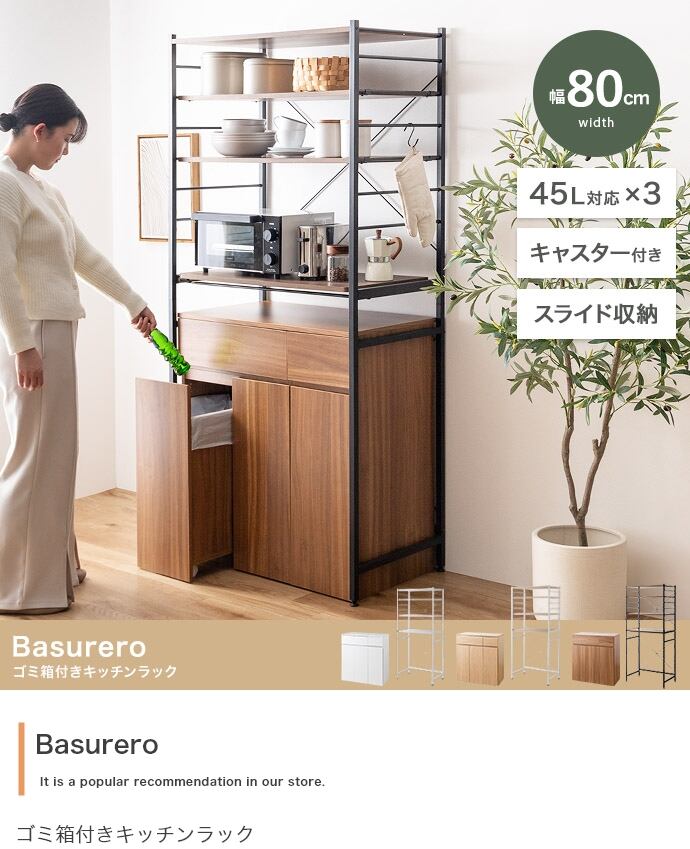 【幅80cm】Basurero ゴミ箱付きキッチンラック
