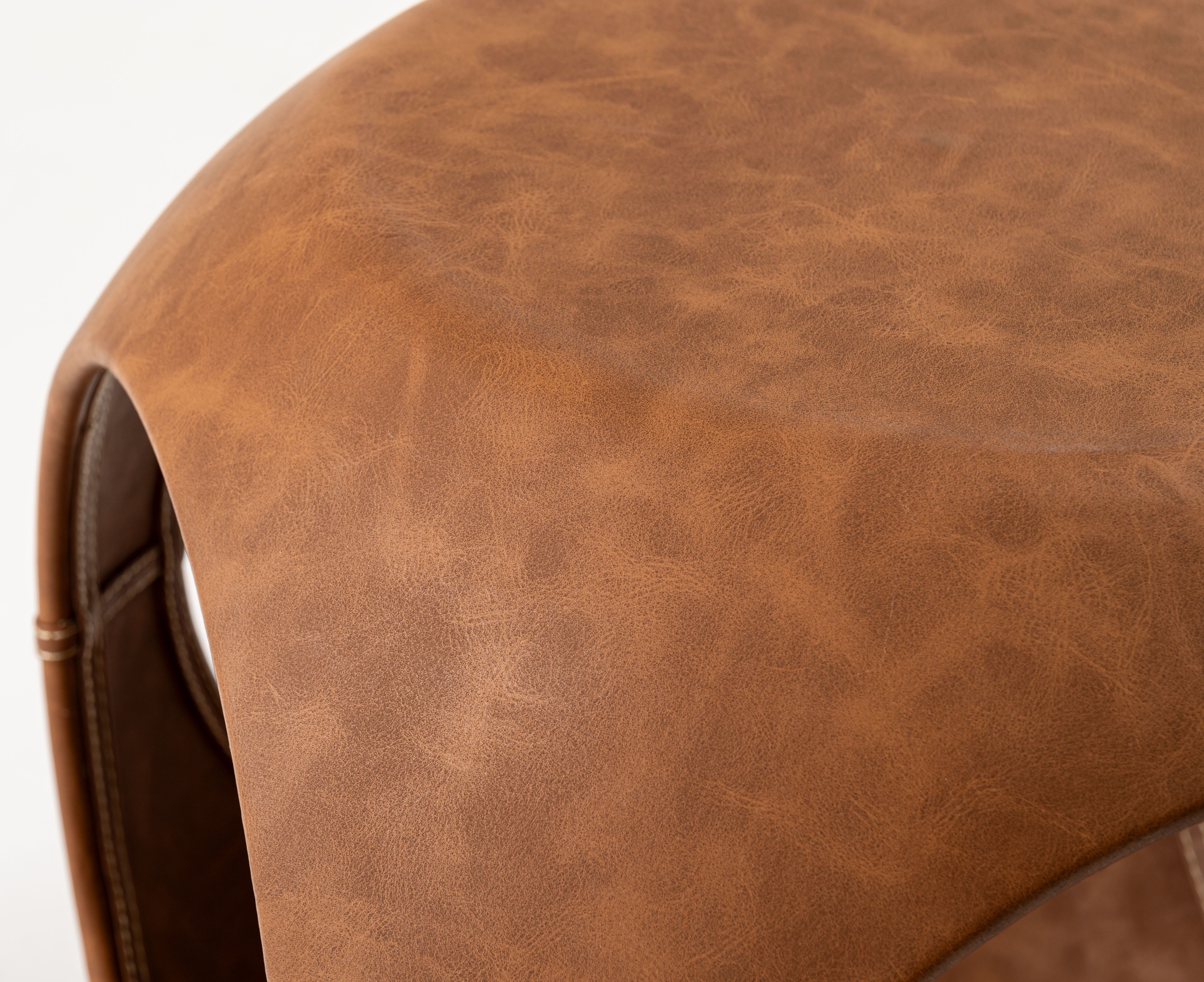 ソフトレザーのクールな質感と施されたステッチが絶妙な調和を魅せ、独創的なフォルムが空間を彩り置くだけで主役になります。