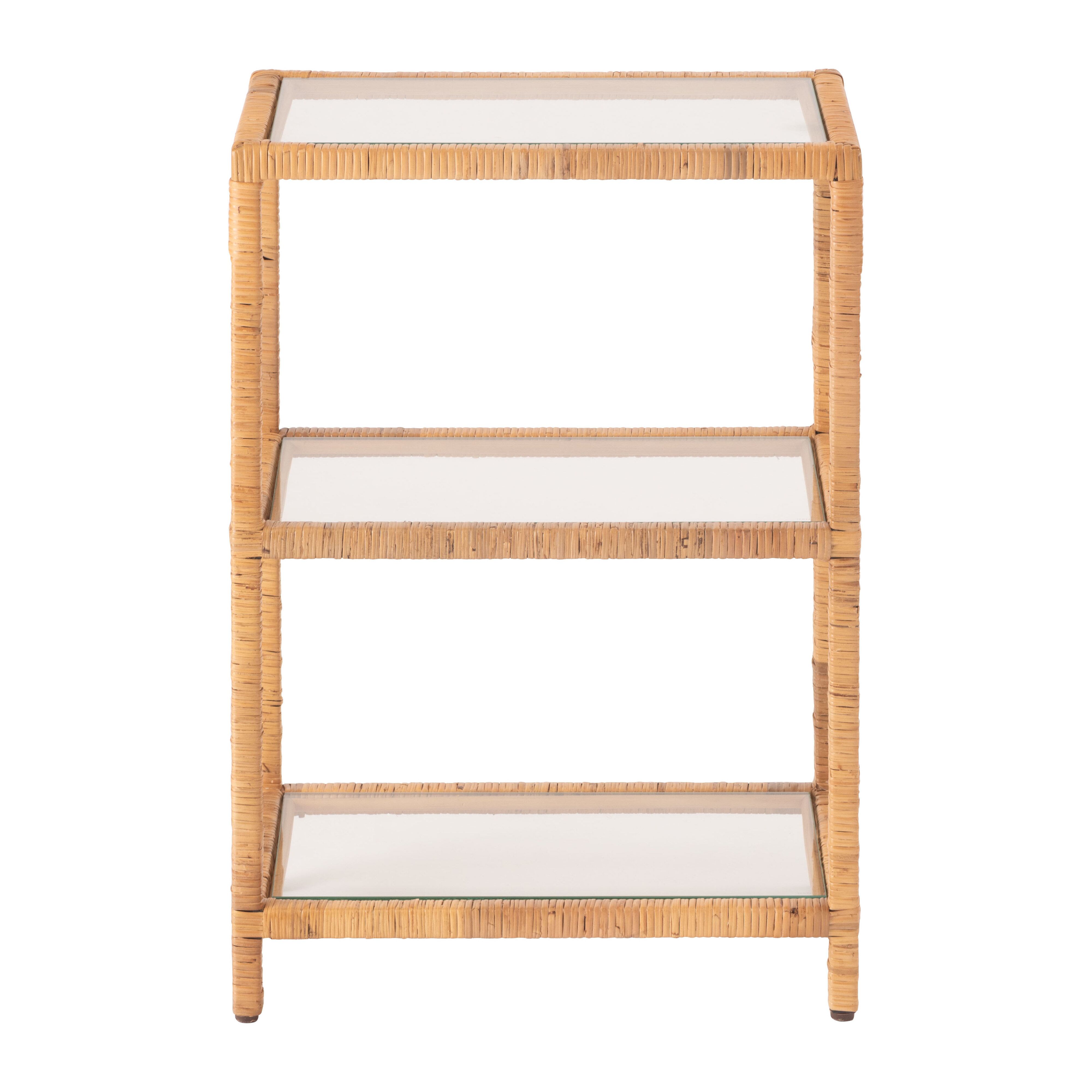 【検索キーワード】シェルフ ガラス ガラスシェルフ ラタン 籐 クリア 収納 収納棚 ラック オープンラック 3段 三段 見せる収納 シンプル 北欧 ナチュラル ナイトテーブル 強化ガラス