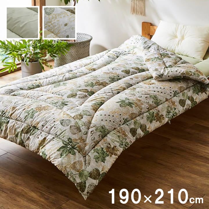 日本製 国産 寝具 掛け布団 抗菌防臭 防ダニ ヒバエッセンス オールシーズン ダブルロング リーフ柄 約190×210cm