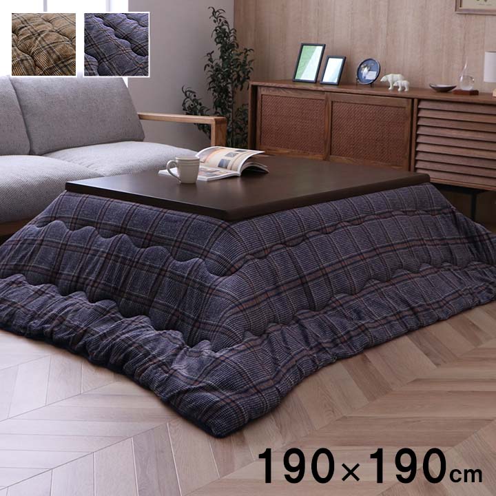 こたつ布団 正方形 単品 カジュアル チェック柄 撥水 約190×190cm