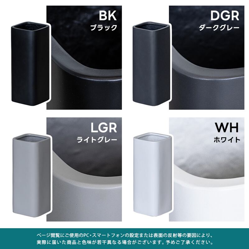 ブラック(BK)、ダークグレー(DGR)、ライトグレー(LGR)、ホワイト(WH)の4色展開です。