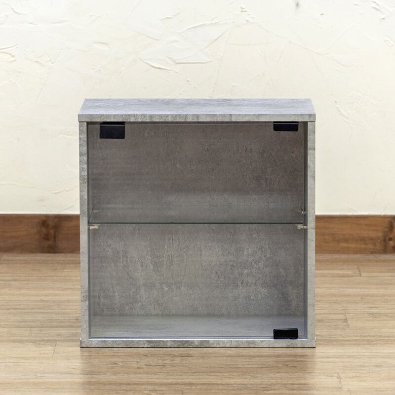 ガラス扉で中身が見えるキューブ型コレクション収納ケースです。