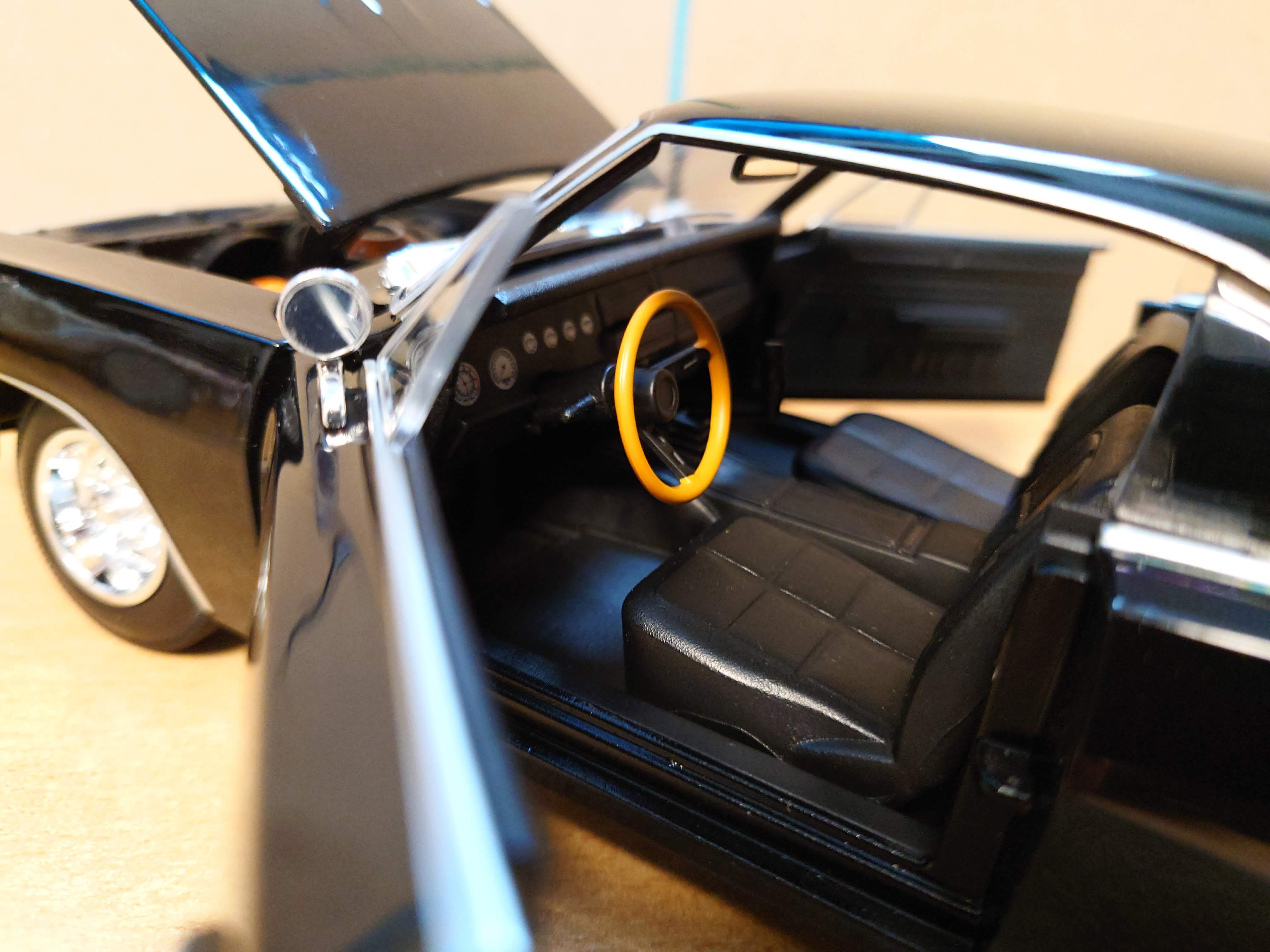 このアメリカンマッスルカーのかっこいいシルエットとボディラインがとてもきれいです。車内・外ともに細部まで本物そっくりに再現されています。いい雰囲気が出ています。コレクションやインテリアとしても最適です。後の写真のように他アメ車と並べると大迫力です。