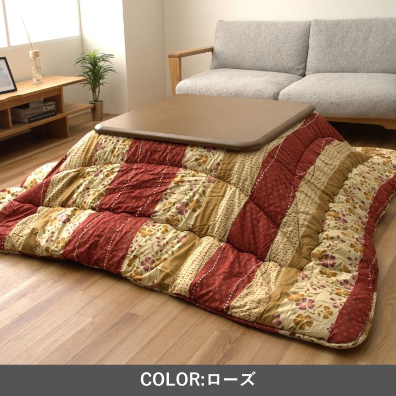 和モダンのオシャレなデザインのこたつ布団。保温性がある中綿を使用しているので、暖かいです。