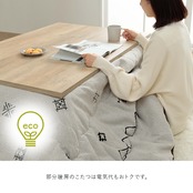 シンプルでホワイトインテリア、ナチュラルインテリアなど幅広いテイストのお部屋とも相性が良く合わせやすいトライバル柄のこたつ布団です。表地にはシェニール糸の生地が使われており、裏地には肌触りが良いマイクロファイバーを使用しています。中綿には弾力性と保温性の高い東レマッシュロン綿を使用しているため軽くて暖かいです。部分暖房のこたつは電気代もおトクです。