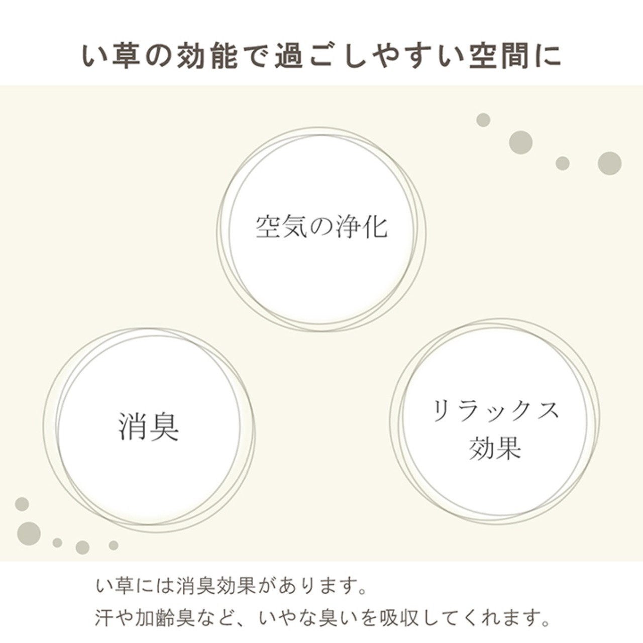 い草には空気の自然浄化作用、湿度の調節作用、リラックス効果などがあります。