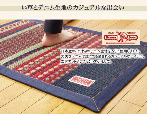 国産 い草マット玄関マット おしゃれ おすすめ 袋織 人気 デニム『Fラルフ』 約60×90cm