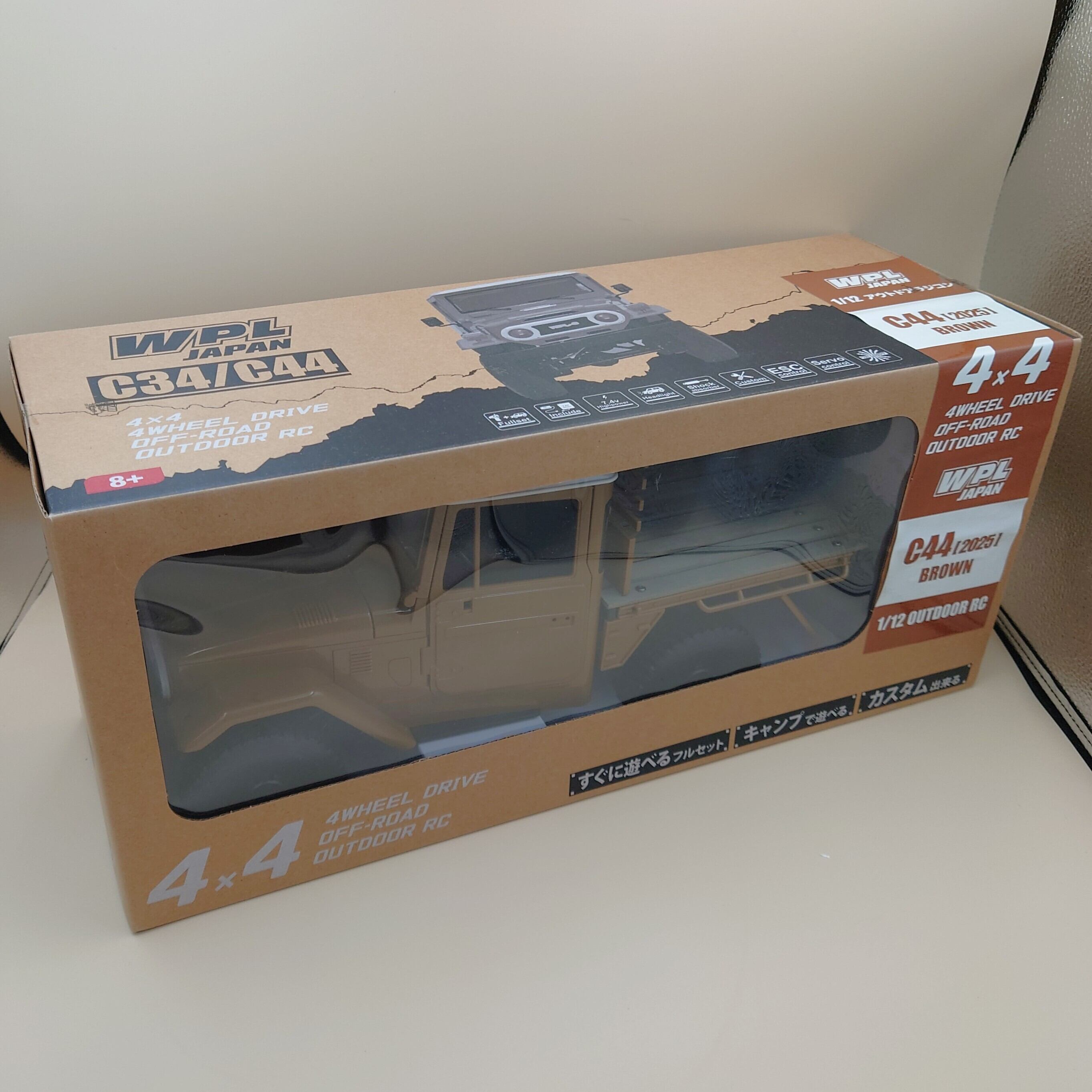1/12なのでデカい!!ヘッドライト点灯、オフロードで走らせても良し、屋内で飾っても良し、フィギュアや荷物を載せても良し、ウェザリングしても良しで、結構本格的にできているトイラジコンです!!