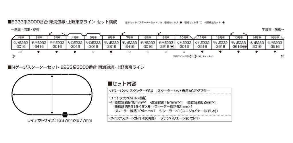 ・セットに含まれる車両は<10-1267S E233系3000番台 東海道線・上野東京ライン 基本セット(4両)>と同等