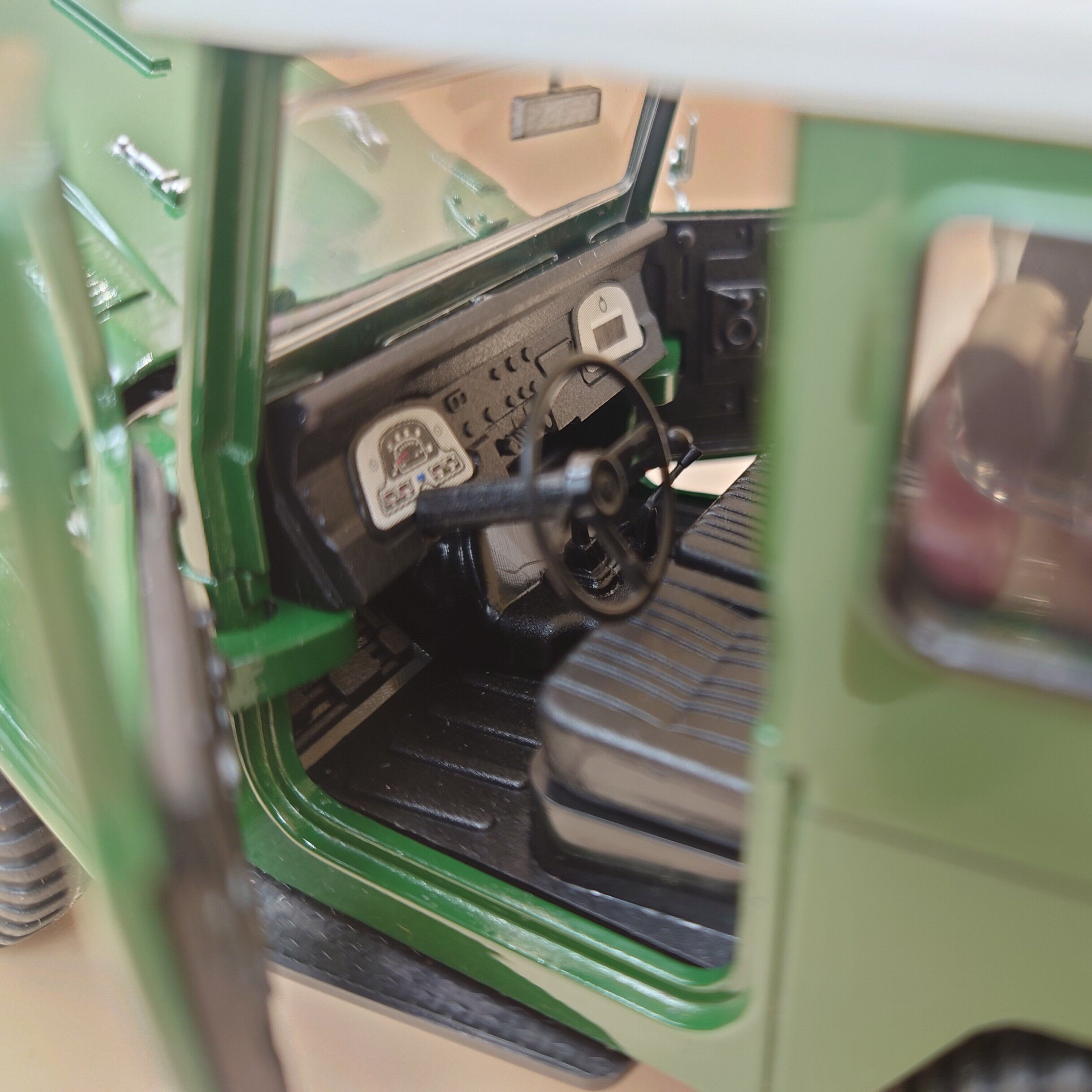 1/24と小さめですが無骨な感じがよく出ていていい感じです。車内・外ともに細部まで本物そっくりに再現されています。いい雰囲気が出ています。コレクションやインテリアとしても最適です。
