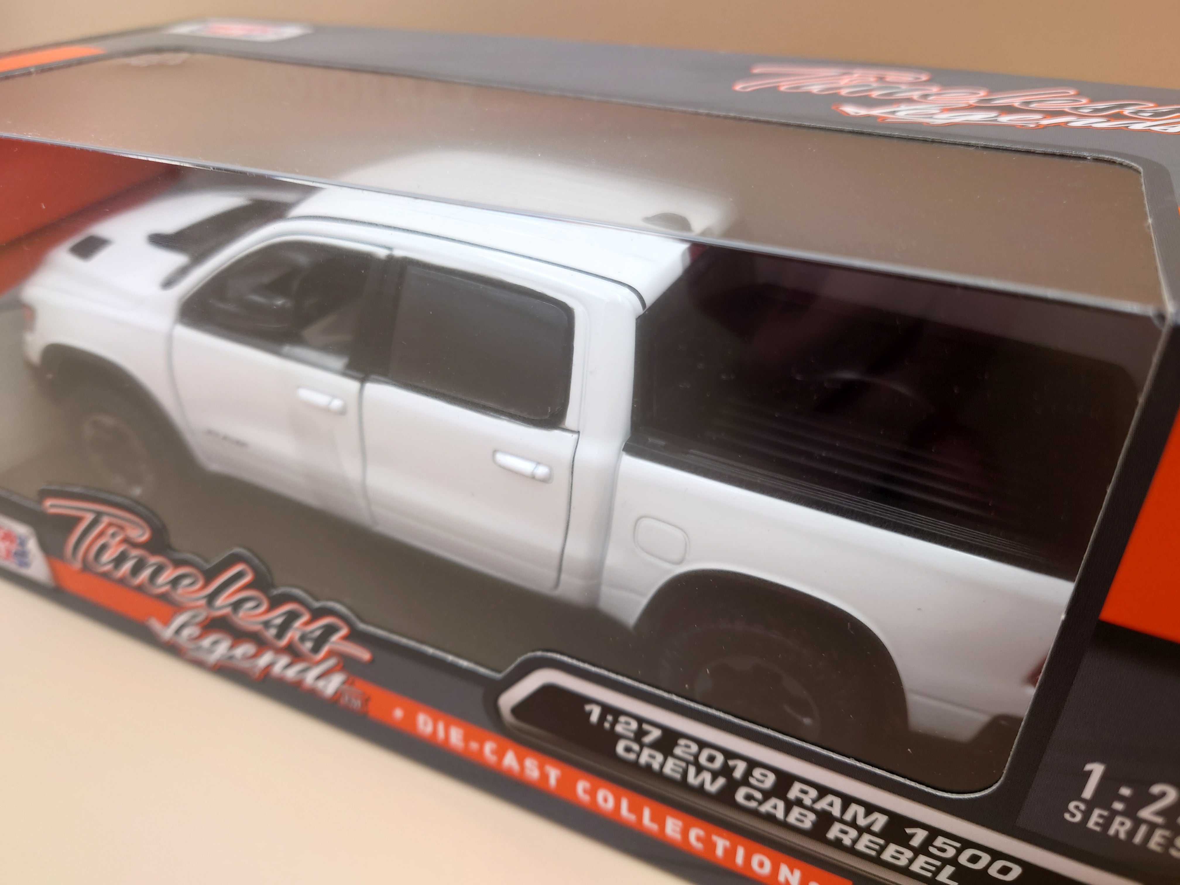 1/24 RAM 1500 ラベルクルーキャブ ホワイト 2019 ピックアップトラック Motormax製ダイキャスト製ミニカー