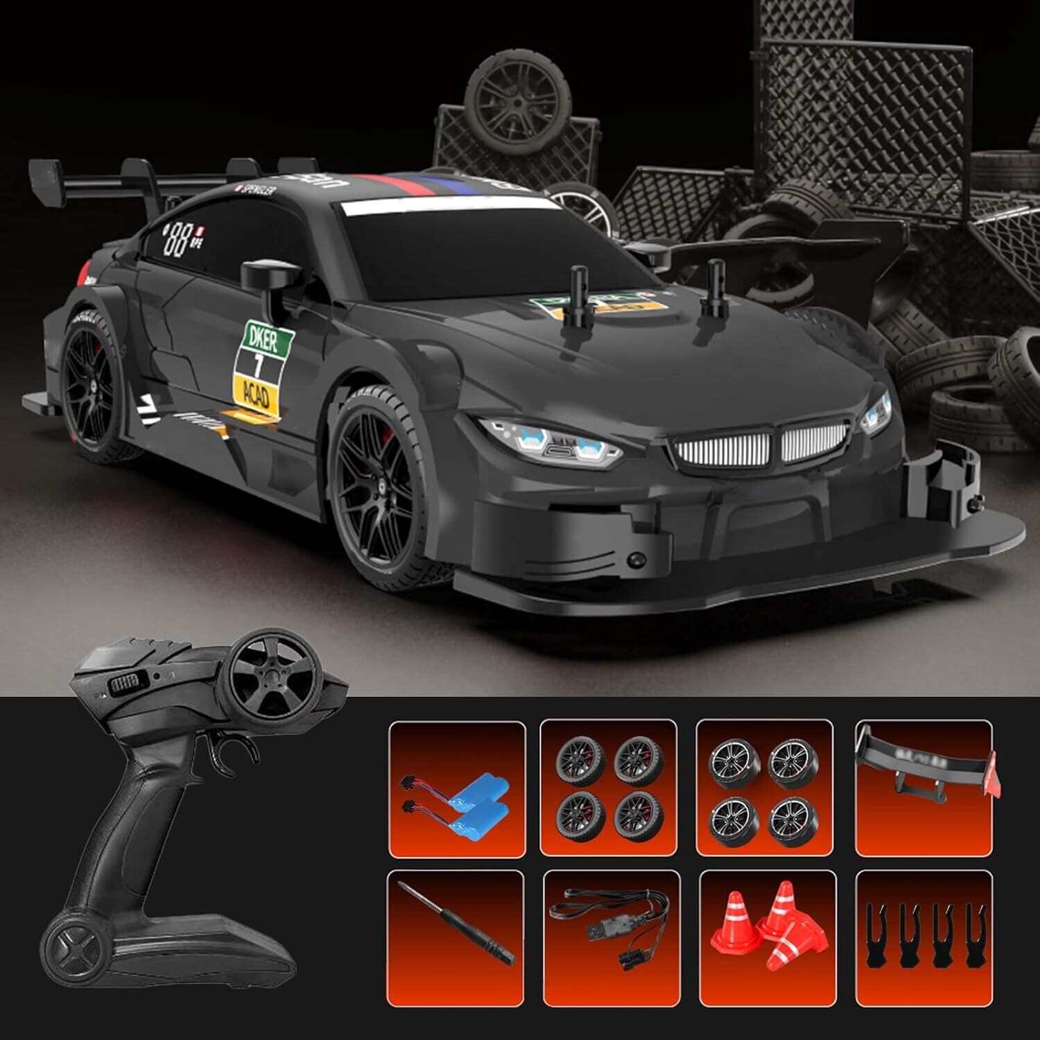 1/16 ドリフトカーラジコン M3 レースカー タイヤ交換可能 バッテリー2個付属 パイロン4個付