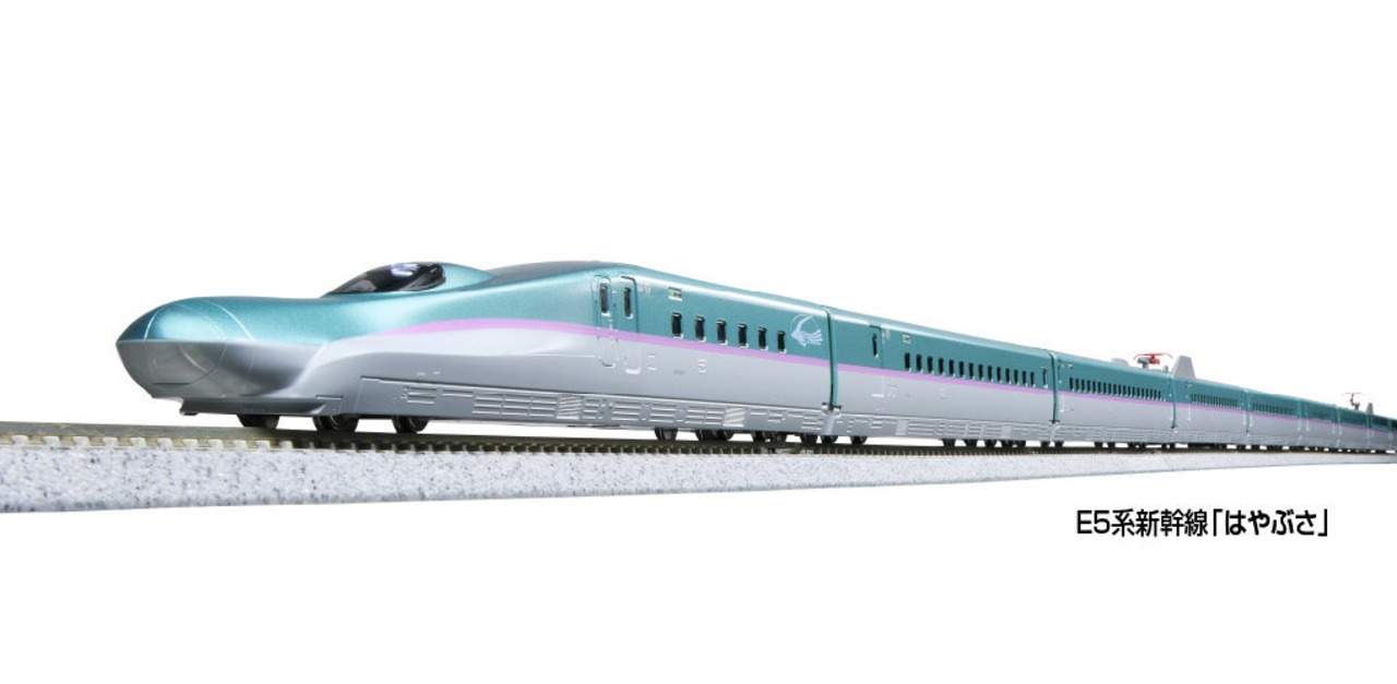 ●東京~新函館北斗間を結ぶ列車「はやぶさ」などで活躍しているE5系新幹線は、国内営業最高速度320km/hでの運転が行われています。登場時と比べて大形の荷物を携行する外国人旅行者が増えてきたことから、2・4・6・8号車の座席の一部が大形荷物置場へと変更され、窓の一部が埋められる工事が施されました。さらにその後、1・3・5・7号車にも同様の工事が施され、9・10号車を除く全車に設置工事が波及しました。◆スターターセットは曲線線路R315を採用し、新幹線でもスムースな運転を楽しめます。付属するパワーパックは黒色のスタンダードSX、箱から出してすぐに運転をお楽しみいただけます。