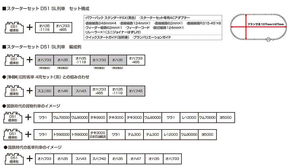 ①セット車両は<2016-9 「D51標準形」>に加え、客車はスターターセットオリジナル車番のオハ35とオハフ33を選定
