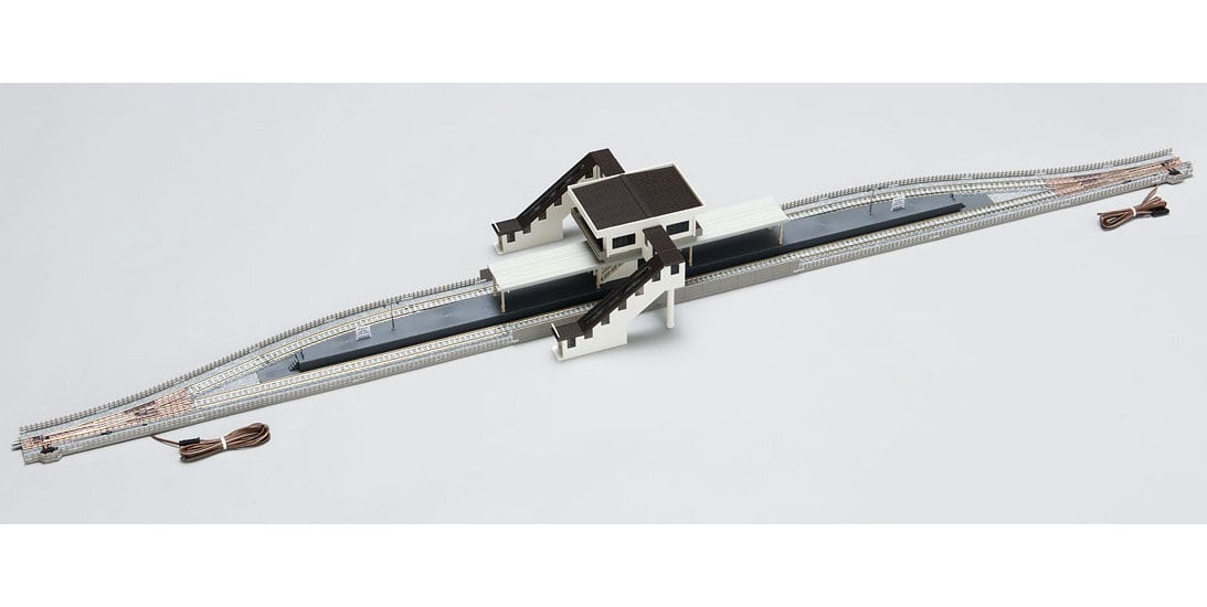 カント付レール基本セットとの組み合わせで単線の待避駅レイアウトが組めるセットです。