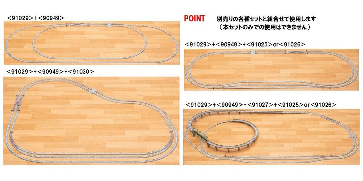 PCまくら木採用のベーシックSD・マイプランLTに加えて、レイアウトを複線化して合成樹脂製のまくら木のダブルクロスポイントの両渡り線を楽しむためのレールパターンDのセットです。