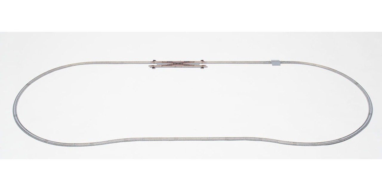 ●複線化するためのセットで外線と内線を車両が行き来できるダブルクロスポイントを備えた複線レイアウトが組める