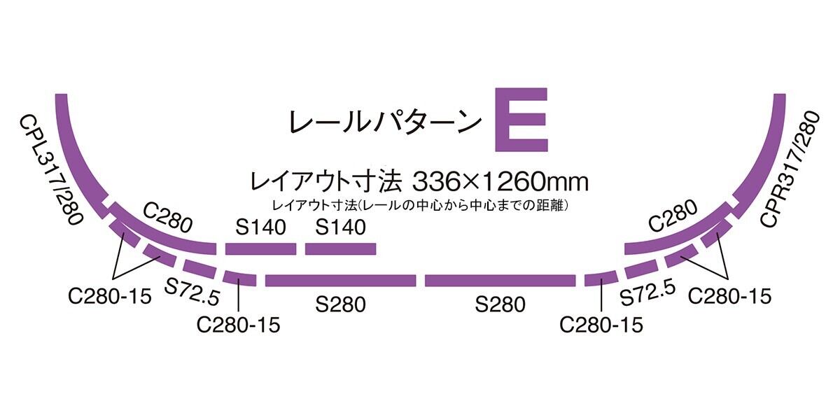 PCまくら木採用のベーシックSD・マイプランLTに加えて、合成樹脂製のまくら木のカーブポイントの待避線を楽しむためのレールパターンEのセットです。