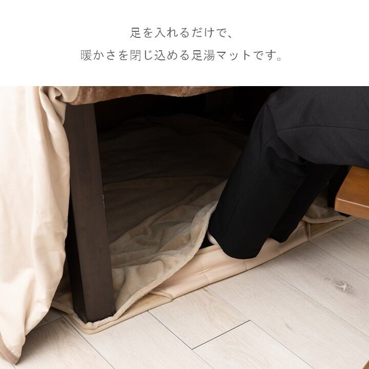 足を入れるだけで、暖かさを閉じ込める足湯マットです。高さがあるから足元が冷えやすいので、暖かさを逃がさない居場所を生み出しました。ポケットのような立体構造で、冷気を遮り熱を逃がさないつくりです。