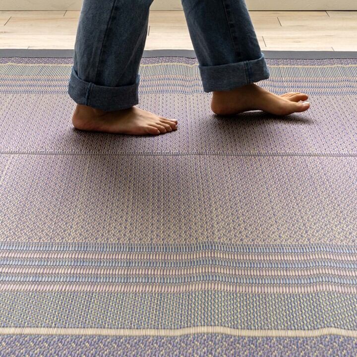 淡く優しい色合いの紫陽花色のラグです。裏はフェルト貼りでほどよいクッション性と滑り止め効果あり