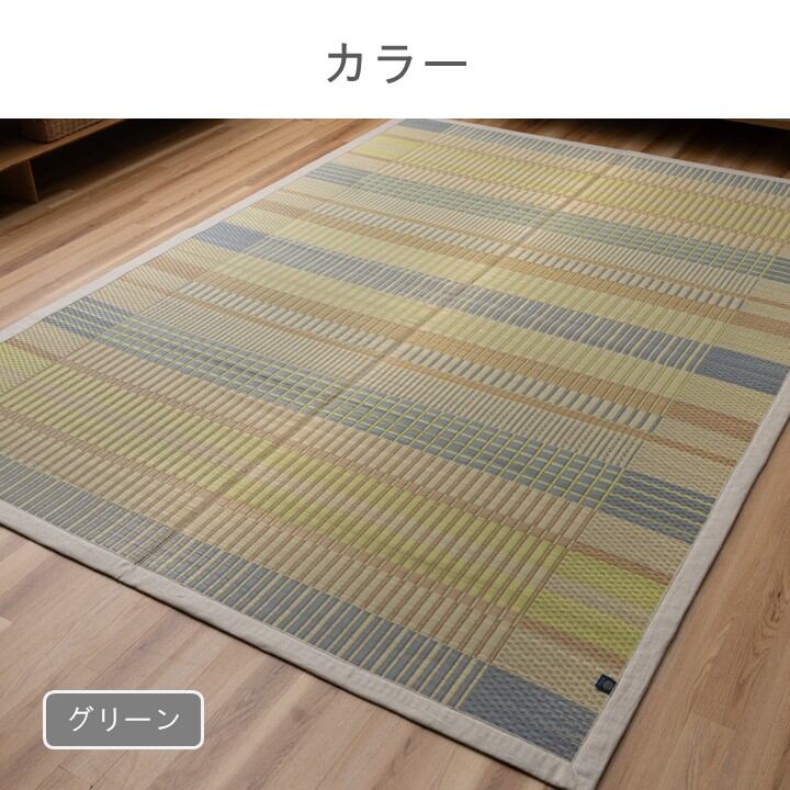 シンプルなチェックやストライプなどのパターンを組み合わせた北欧モダンのい草ラグです。縁に滋賀県の近江で織った麻は豊かな水と湿度で丁寧に織り染められた美しい光沢感があるものを使用しました。