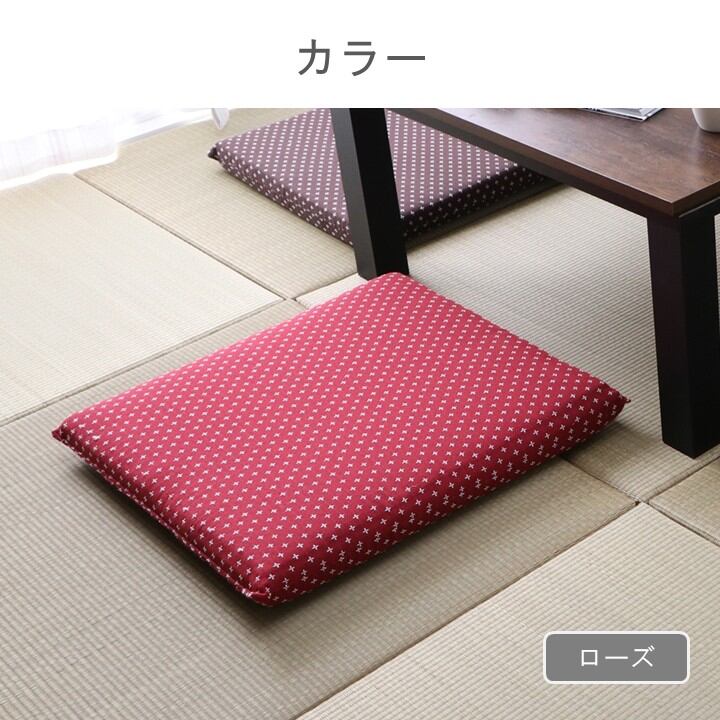かわいい刺し子柄の座布団です。和室洋室どちらでも使えるデザインです。中綿が三層構造になっており、へたりにくいです。