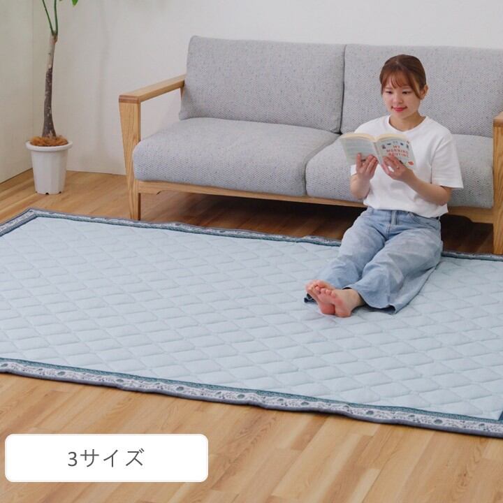 夏にぴったりな冷感生地のカーペットです。表地は強冷感生地でひんやりで、四方はエレガンスなジャガード生地使用しています。裏面には滑りにくい加工を施しています。