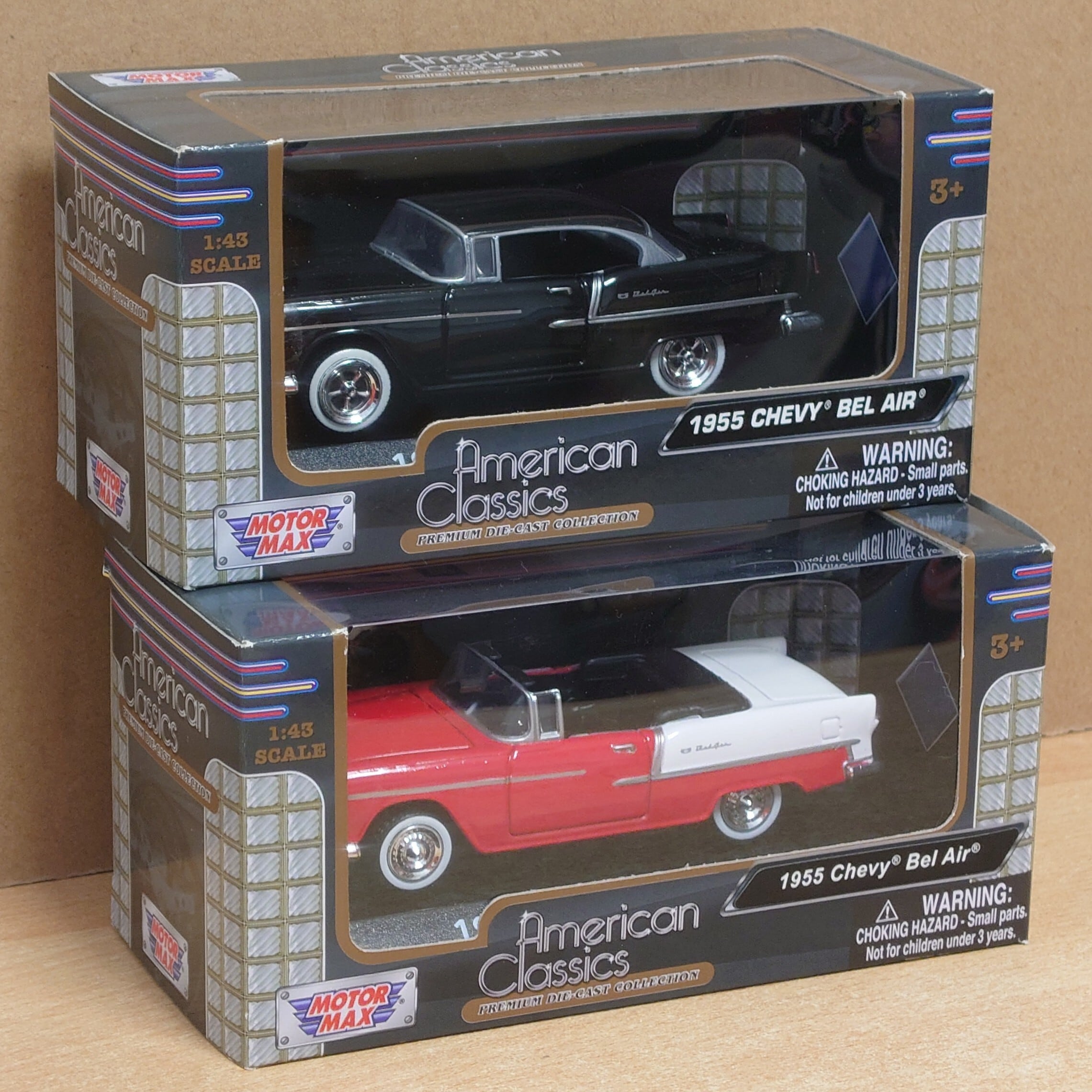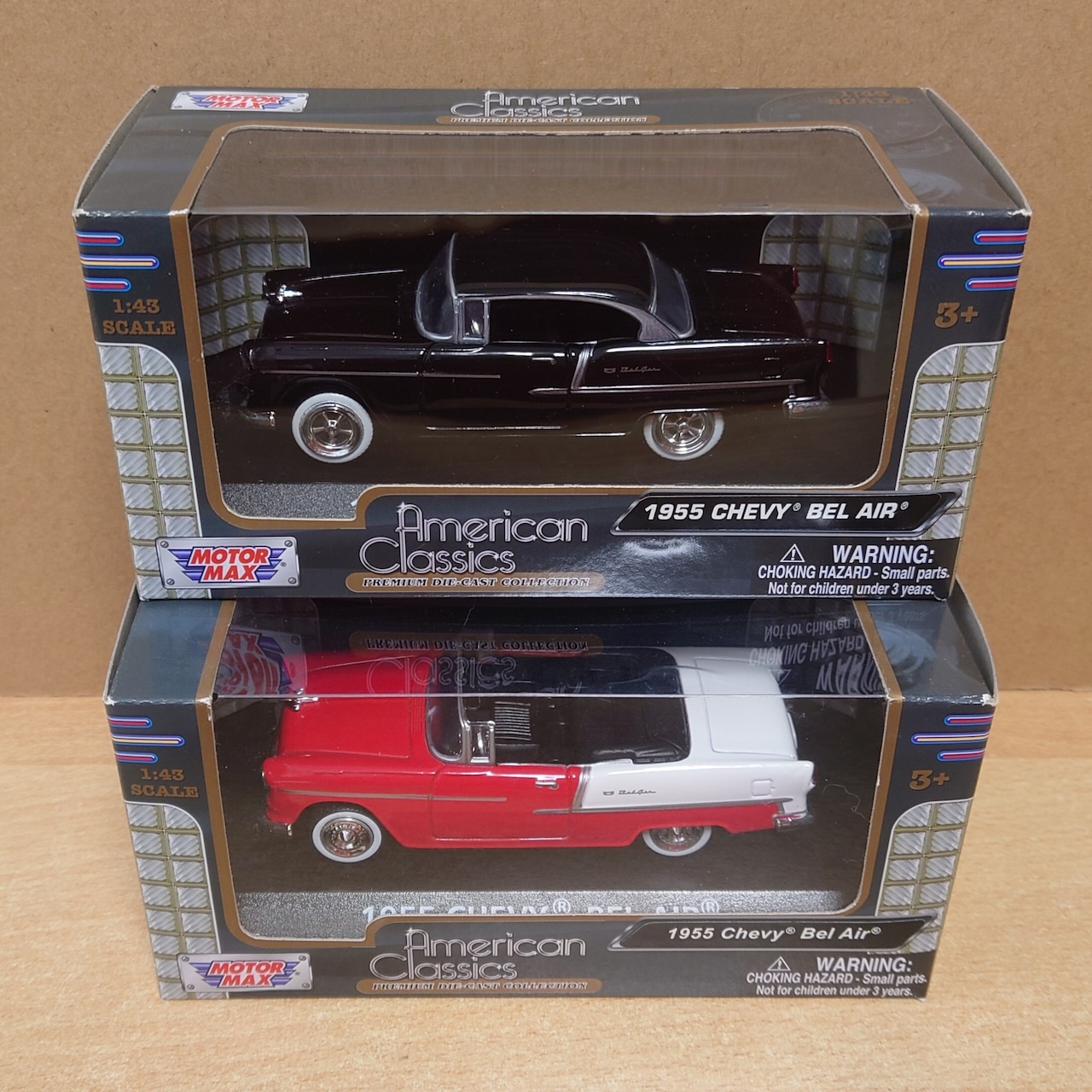 1/43 2台セット シボレー ベルエア 1955 モーターマックス製ダイキャスト製ミニカー