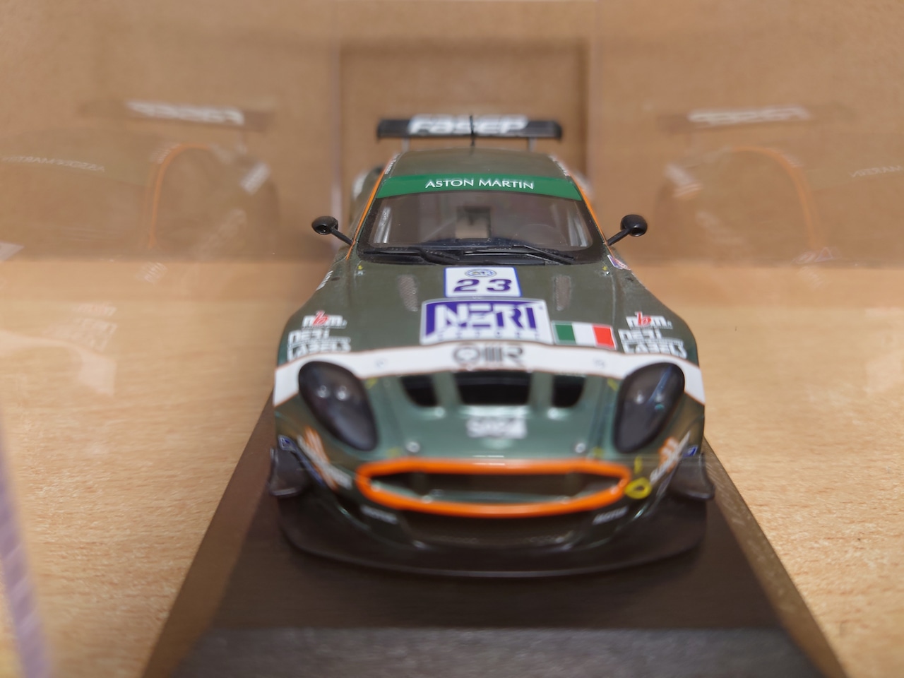 アストンマーティン DBRS9は、2005年に登場したGTレーシングカーで、名門アストンマーティンが国際GTレースへ本格復帰する象徴的存在である。市販車DB9をベースに開発され、カーボンコンポジットボディと強化シャシーを採用。6.0リッターV型12気筒エンジンはレース用にチューニングされ、官能的なサウンドと圧倒的なパワーを誇った。FIA GT選手権やル・マン24時間レースGTクラスで活躍し、耐久性と速さを両立した実力を証明。エレガントなスタイルにレーシングテクノロジーを融合させたDBRS9は、英国流GTカーの美学と闘争心を体現した一台である。