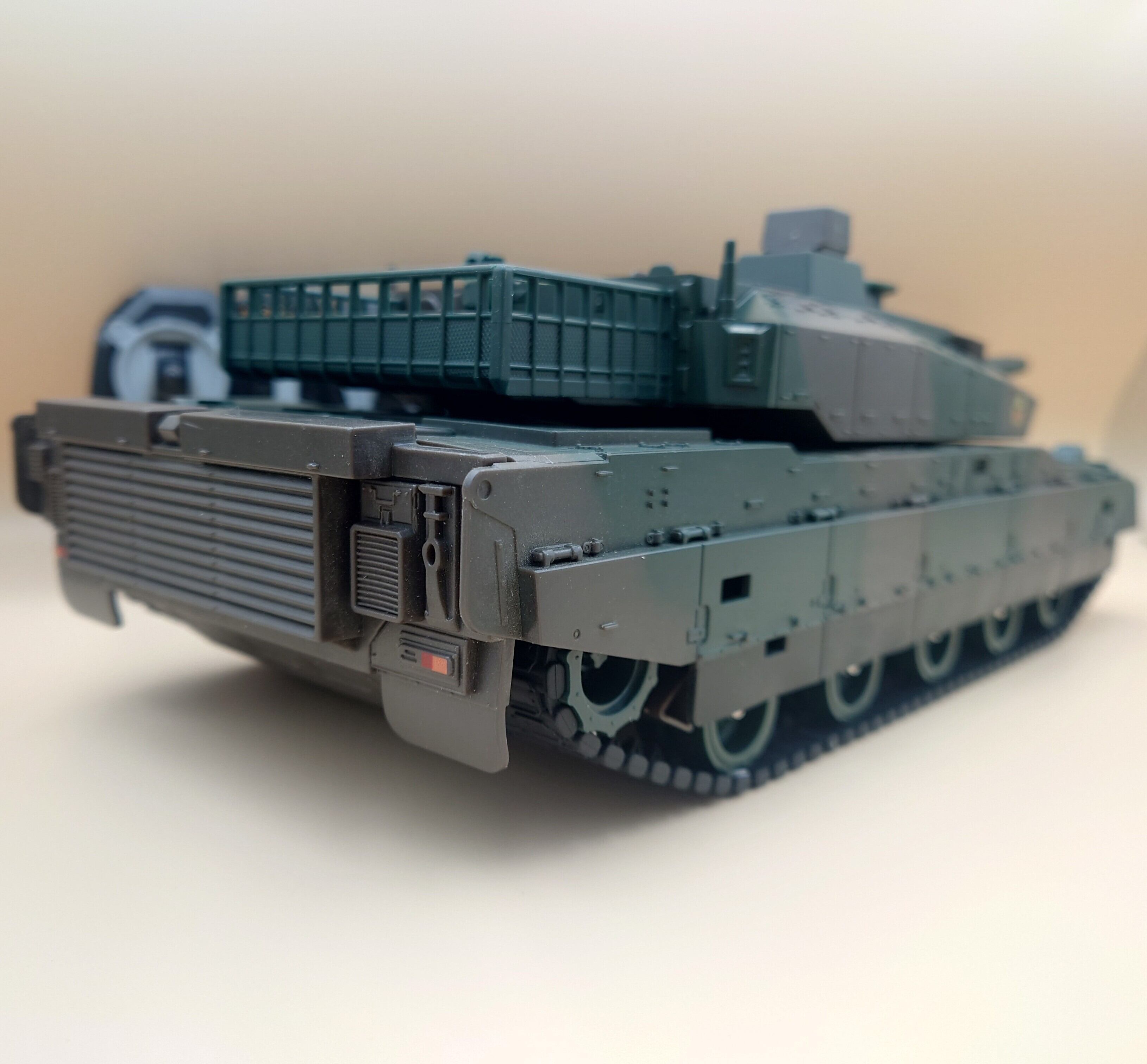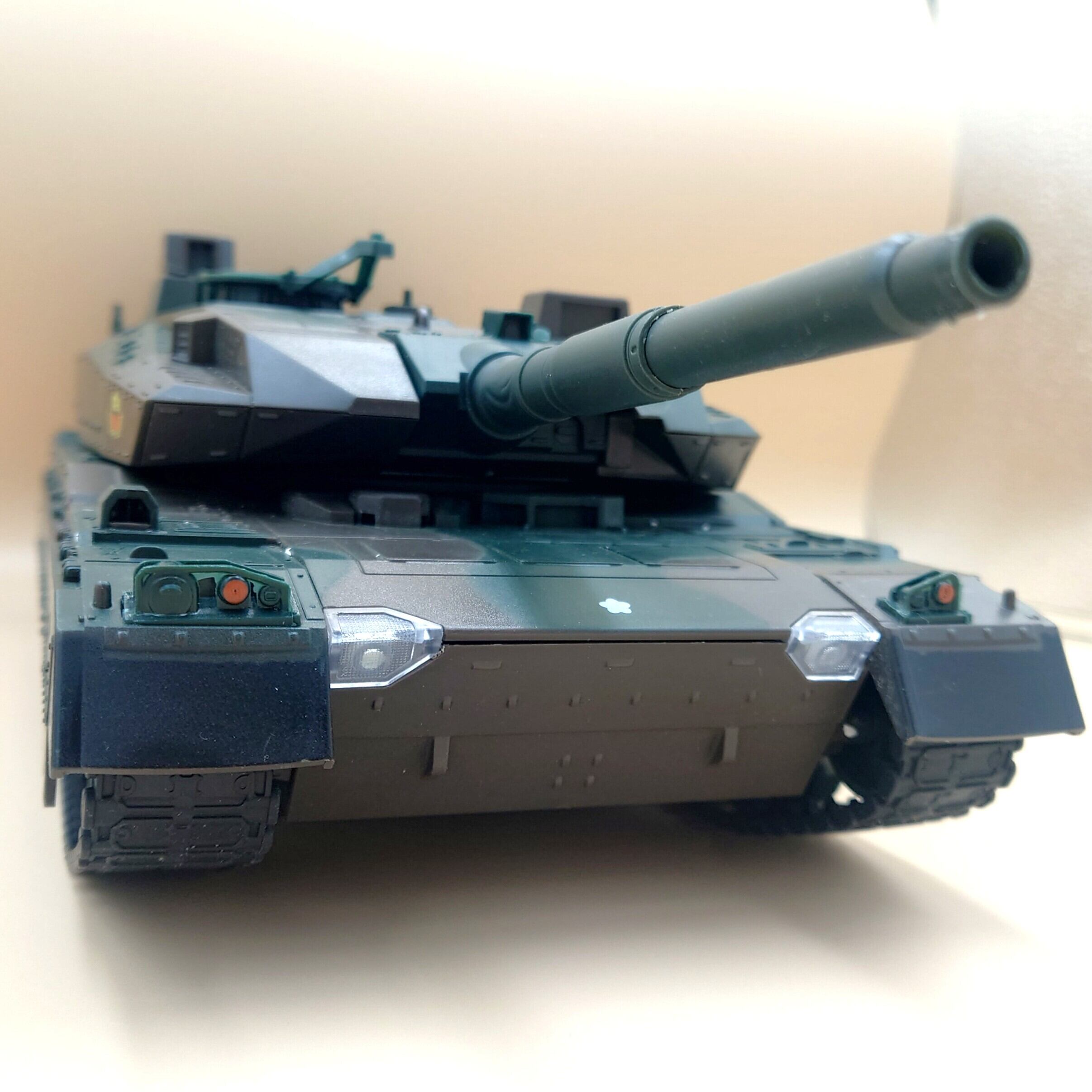 メーカー商品名では1/20ですが、1/24より少し大きいぐらいに感じます(詳しくはサイズ表参照)。中華製ですが、艶消しの質感は良く、スロー走行、キャタピラで左右方向転換、回転、砲塔回転、ヘッドライト、サウンド、リコイル、対戦連動等、機能盛りだくさん。日本語説明書はありませんが、不要なほど操作は簡単です。