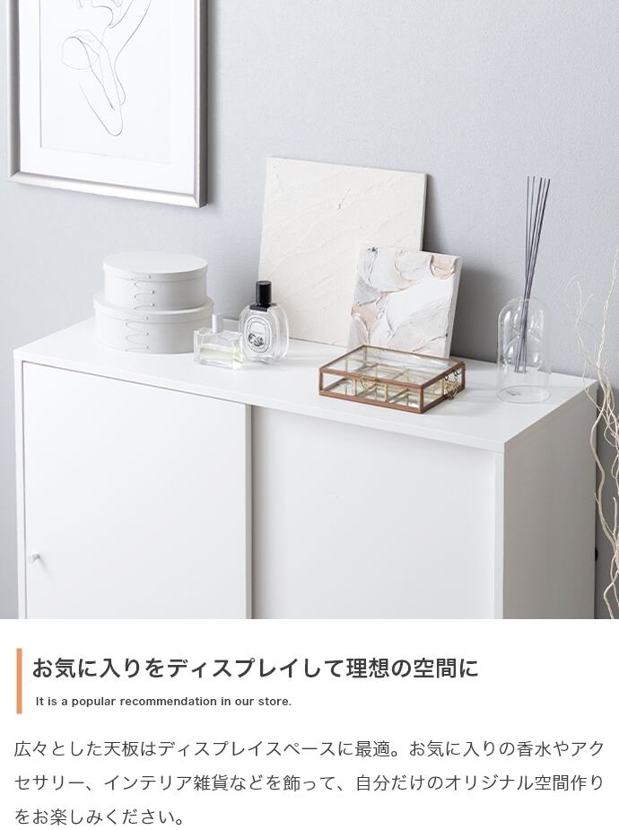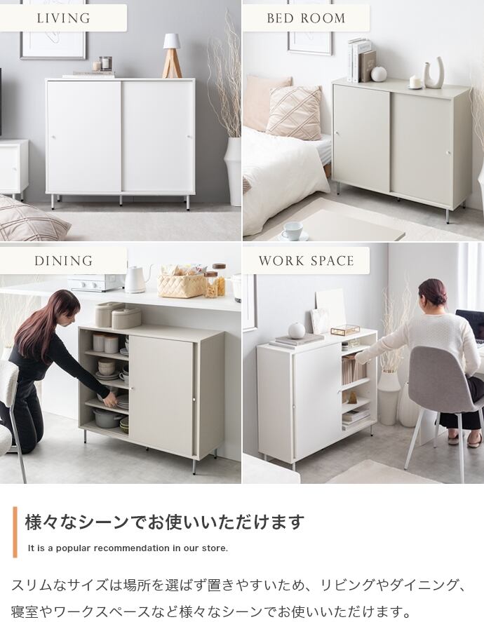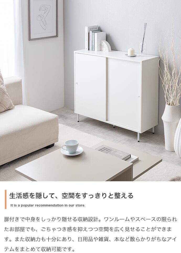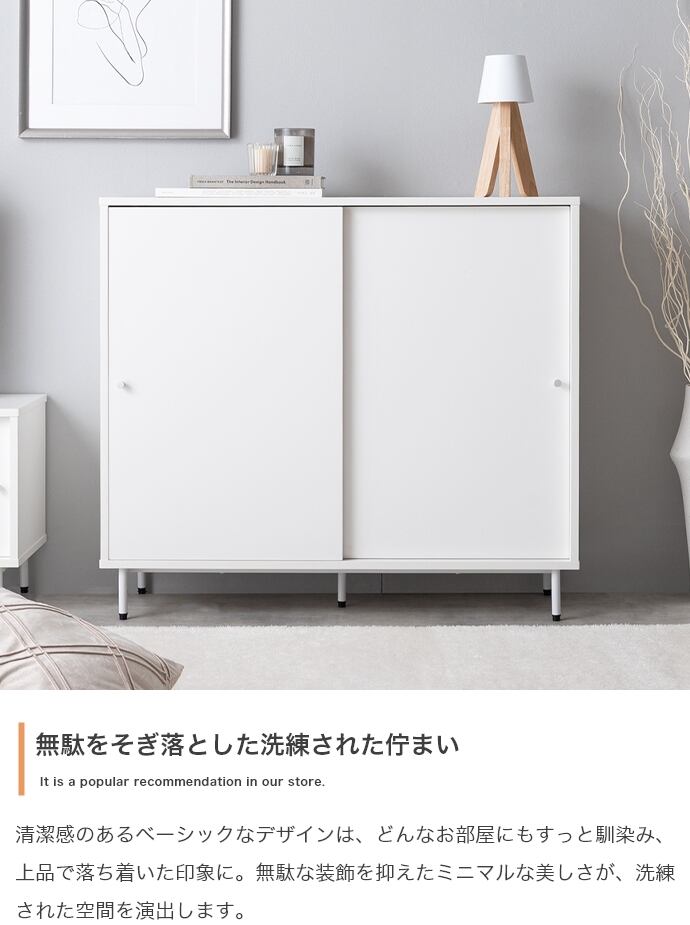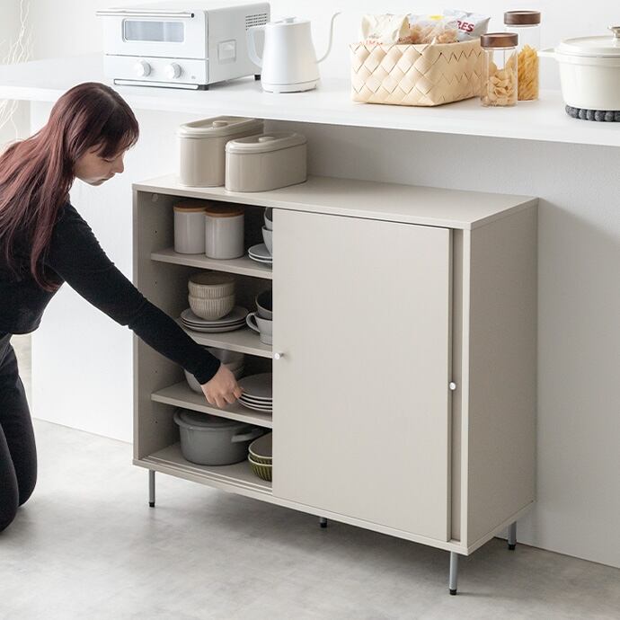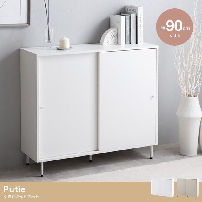 【幅90cm】Putie 引き戸キャビネット