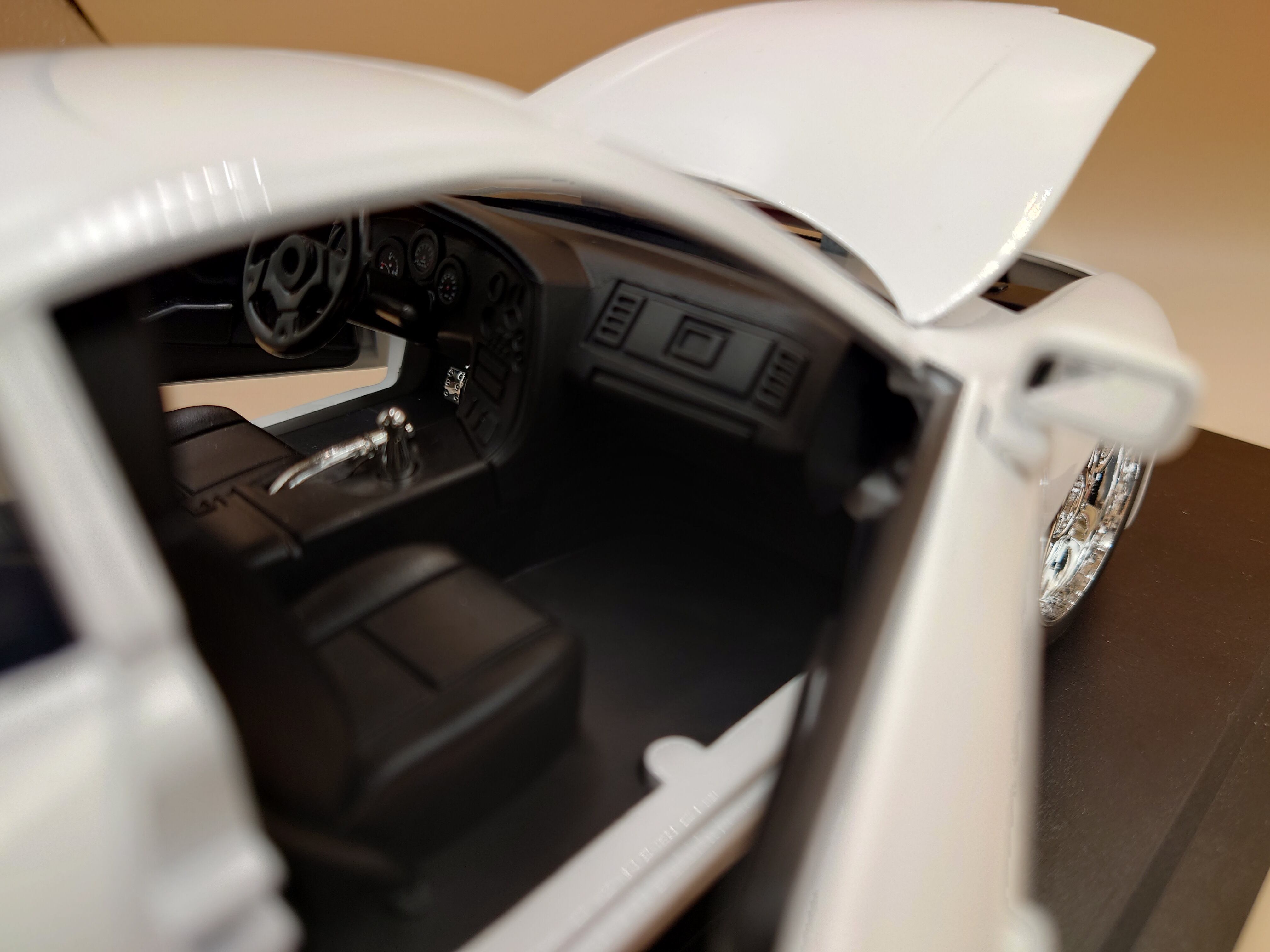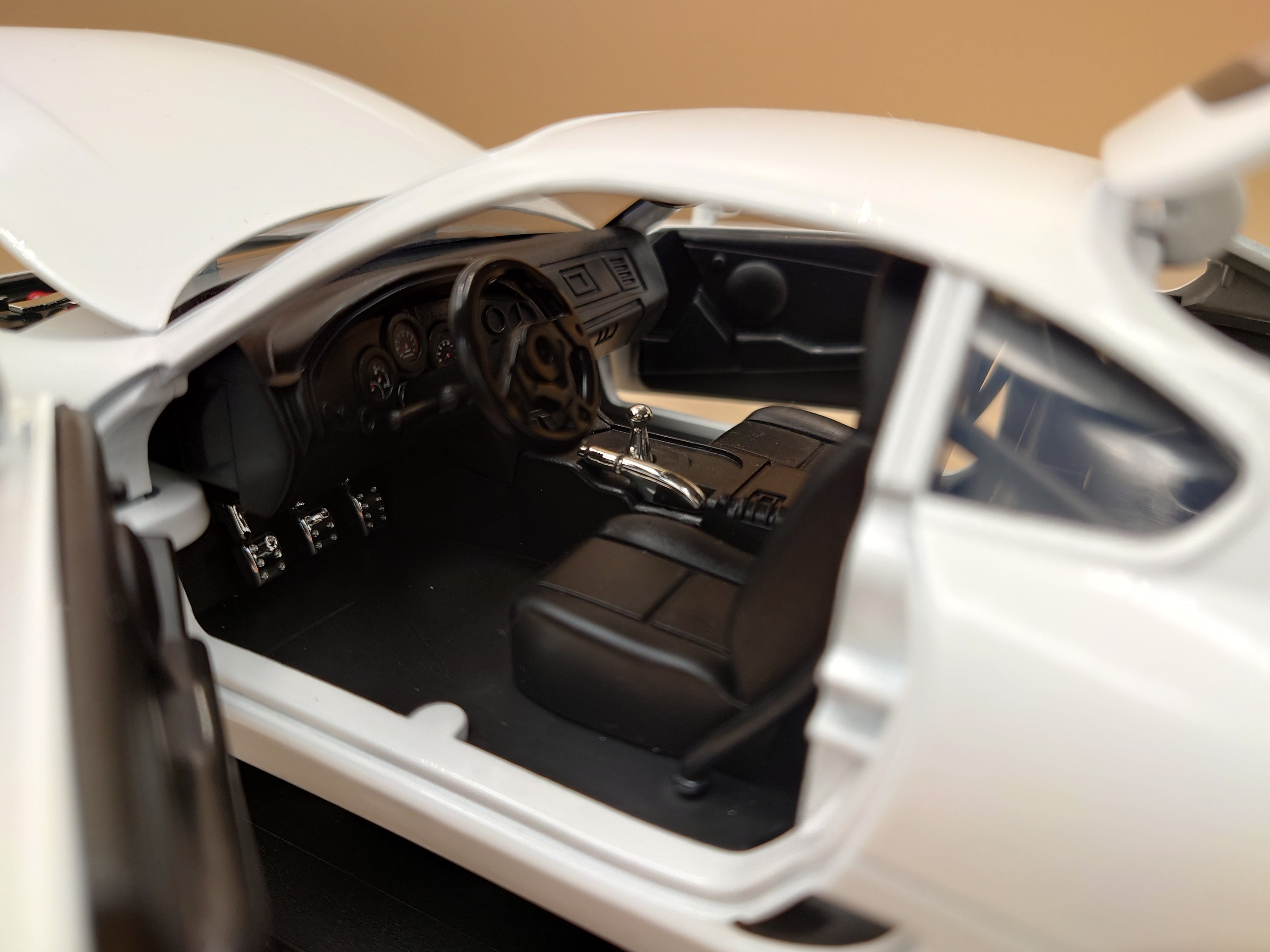 この懐かしくかっこいいエアロシルエットとボディのホワイトカラーリングがとてもきれいです。いい雰囲気が出ていて、完成度の高い一台です。コレクションやインテリアとしても最適です。