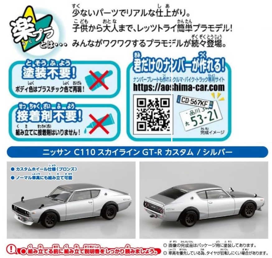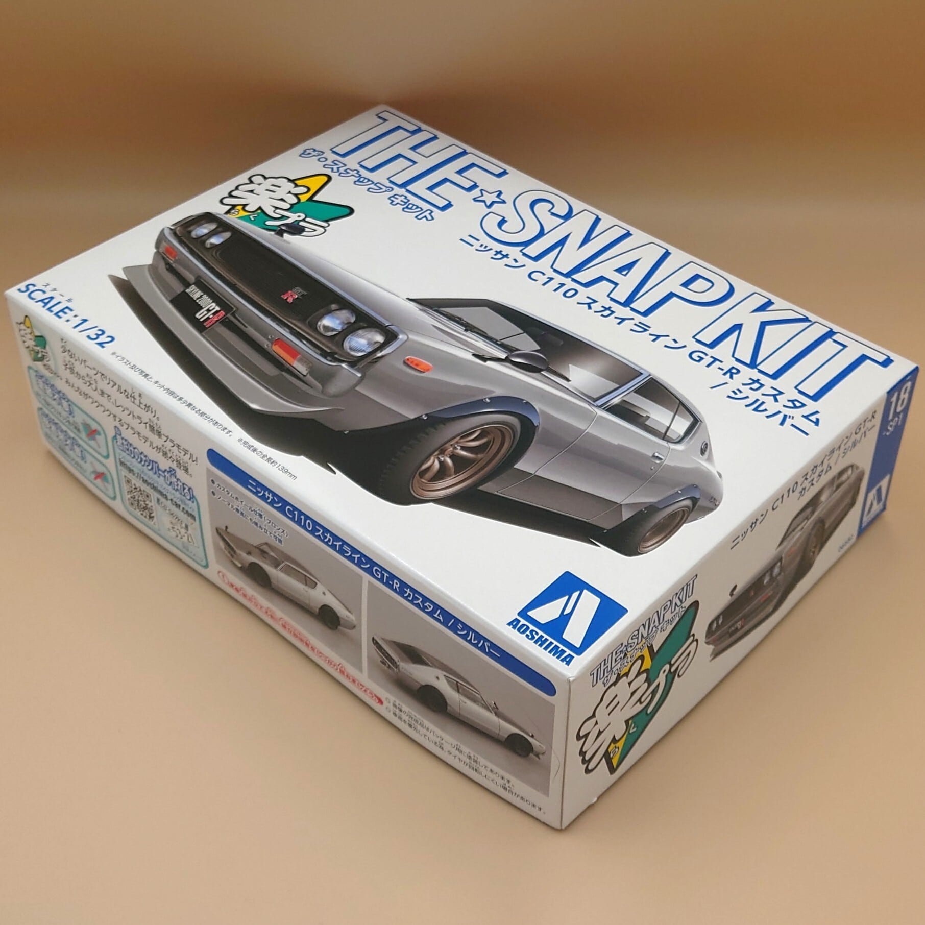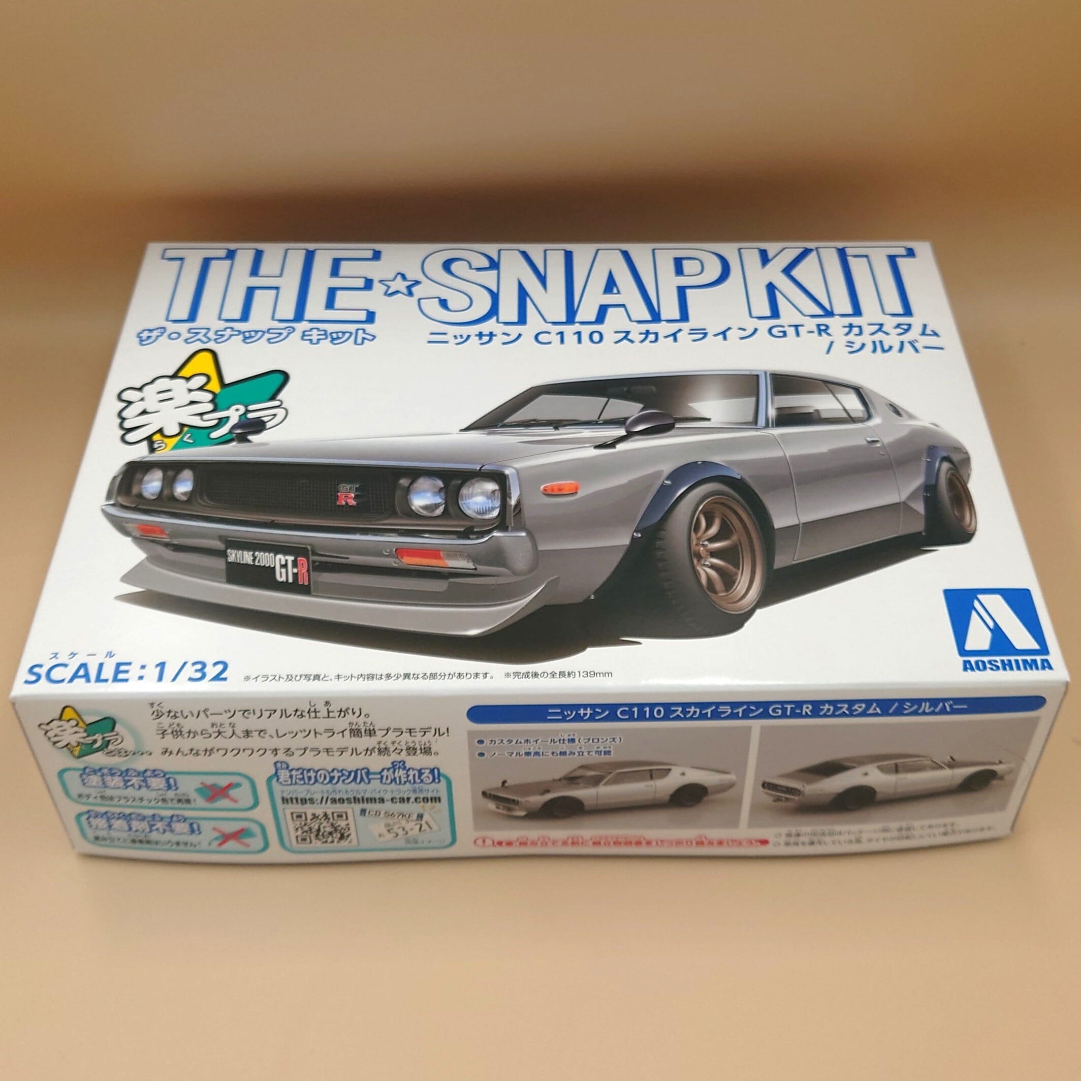 1/32 青島文化教材社 スカイラインGT-R カスタム C110 シルバー No.18-SP1 楽プラ スナップキット 色分け済みプラモデル
